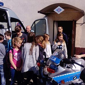 Uczniowie mogli dowiedzieć się i zobaczyć jak wygląda praca policjanta. Dzieci bardzo chętnie słuchały dzielnicowych, którzy opowiadali o swojej codziennej służbie oraz prezentowali wyposażenie każdego policjanta. Największe zainteresowanie wzbudziły policyjne radiowozy, motocykle i pies służbowy. Dzieci dowiedziały się również o podstawowych zasadach bezpieczeństwa, a także zwiedziły pomieszczenia, w których pracują policjanci różnych pionów. Policjantka Zespołu ds. Nieletnich, w związku z trwającymi działaniami pn. „Bezpieczna droga do szkoły” przypomniała podstawowe zasady bezpieczeństwa w ruchu drogowym.