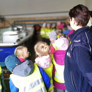 Choć mali goście dużo już wiedzieli na temat bezpiecznego poruszania się po drodze, to i tak wczorajsze spotkanie było doskonałą okazją do przypomnienia kilku podstawowych zasad. Dzieci z zaciekawieniem słuchały rad policjantek o tym, jak być bezpiecznym na drodze, podczas kontaktów z obcymi osobami, czy też z nieznanymi zwierzętami. Miały również możliwość zapoznania się ze sprzętem używanym przez funkcjonariuszy, w tym z policyjnymi radiowozami, motocyklami i łódką. Jedną z atrakcji był również pies służbowy, o którym opowiedziała jedna z policjantek.