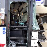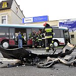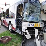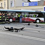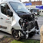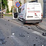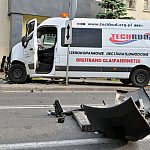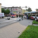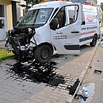 Zderzenie samochodu dostawczego z autobusem miejskim na kilka godzin zablokowało główne skrzyżowanie w Świeciu. Kierowca autobusu cudem ocalał.