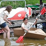7 ekip studentów wodowało w Tleniu swoje łodzie z tektury. Zobacz czy ktoś dopłynął do mety.