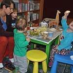 Podczas przedostatnich zajęć odwiedziła nas tylko mała Wiktoria, która nie dała pokonać się jesiennej chandrze. Wspólnie z babcią ozdobiła znalezionymi podczas spaceru liśćmi sukienkę Pani Jesień a później, mając cały plac zabaw dla siebie, skrzętnie korzystała z dobrodziejstw radosnych harców.
