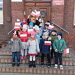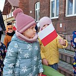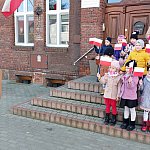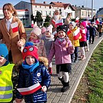 Dzieci zauważały, że biało - czerwone flagi wiszą też na budynkach. Patriotyczny korowód wzbudzał zainteresowanie kierowców, którzy klaksonami pozdrawiali przedszkolaków.
