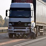 Dziś przed południem doszło do zderzenia vw polo z ciężarowym mercedesem. Na szczęście nikt nie został ranny.