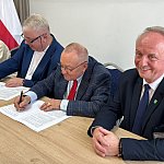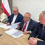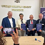 17 marca 2026 roku to ważna data dla gminy Pruszcz. Wczoraj w siedzibie urzedu Dariusz Wądołowski (burmistrz Pruszcza), Jacek Olech (SIM KZN-Bydgoski) i Jarosław Bąk (firma Profud ze Świecia) podpisali umowę na budowę pierwszego bloku w Wałdowie.