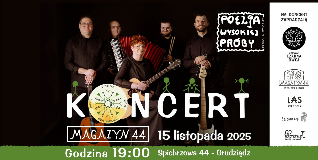 Już 15 listopada o godzinie 19:00, Magazyn 44 zamieni się w kameralną przystań dla miłośników słowa i ambitnej muzyki. Na grudziądzkiej scenie wystąpi zespół Poezja Wysokiej Próby – grupa, która z powodzeniem łączy literacką głębię z nowoczesnym, akustycznym brzmieniem.