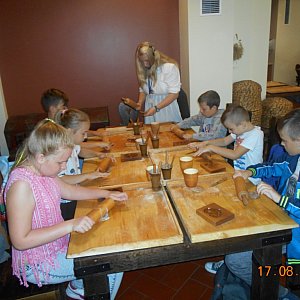 Niesłabnącym zainteresowaniem cieszyły się także półkolonie, które zawsze odbywały się w sierpniu. Przez 2 tygodnie ich uczestnicy spotykali się na różnego rodzaju zajęciach. Były gry i zabawy sportowe, warsztaty gipsowe, warsztaty tworzenia biżuterii, wyjście do kina i oczywiście wycieczki. W tym roku dzieci i młodzież odwiedzili Toruń, a w nim Muzeum Toruńskiego Piernika, Orbitarium oraz przybliżyli sobie postać Mikołaja Kopernika w Planetarium. Kolejną wyjazdową atrakcją było przestąpienie gościnnych progów Wioski Ginących Zawodów w Koronowie. Uczestnicy wycieczki dowiedzieli się wielu ciekawostek związanych z życiem na wsi w przeszłości, spróbowali ziemniaków z parownika oraz ogniskowych kiełbasek. Zwieńczeniem wakacyjnego czasu był wyjazd do Warszawy. Celem wycieczki było tamtejsze ZOO. Dzieci zapoznały się z historią Willi Państwa Żabińskich, w której w czasie II wojny światowej znalazło schronienie kilkuset Żydów. Każdy mógł też podziwiać piękne okoliczności przyrody w Łazienkach Królewskich. Nieodmiennie atrakcją półkolonii jest nocowanie w GOKSiR, tym razem było szczególnie, a to za sprawą myśliwych z Koła Łowieckiego nr 43 w Bratwinie, którzy pokazali nam w terenie jak wyglądają zwyczaje zwierząt. Wypoczywający mogli też nieco podejrzeć zachowanie zwierząt po zmroku, uczestnicy przeżyli przy tym wiele przygód i chyba te emocje nie dały nikomu zmrużyć oka tej nocy.
