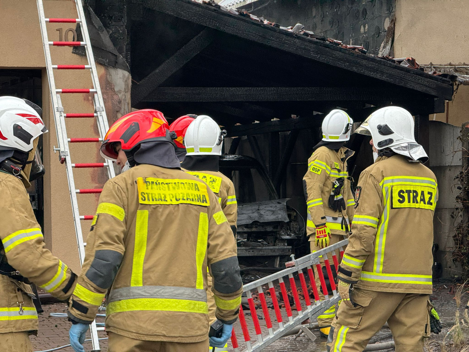 Płonący samochód na ulicy Akacjowej w Świeciu. Trwa akcja ratunkowa. Strażacy walczą, o to by straty były jak najmniejsze. Nadpaliła się elewacja budynków, a właściciel jest poparzony.