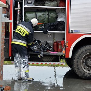 Karetka pogotowia przewiozła jednego z pracowników do szpitala w Świeciu z objawami podtrucia.