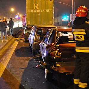 - Miałem czerwone światło, więc stanąłem – opowiada kierowca TIRa. – Poczułem lekkie uderzenie z tyłu i pomyślałem, że ktoś nie wyhamował. Wyskoczyłem z kabiny i zobaczyłem trzy uszkodzone osobówki.
