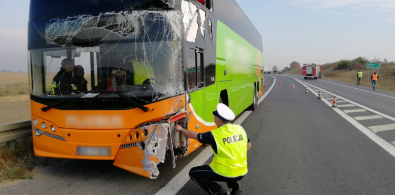 Dzisiaj (18.10.2018) ok godziny 9:20 dyżurny świeckiej komendy otrzymał informację o zdarzeniu drogowym zaistniałym na krajowej 5 w Zbrachlinie, pow. świecki. Policjanci ruchu drogowego, którzy udali się na miejsce wstępnie ustalili, że kierujący autokarem m-ki Plaxton, 53-letni mieszkaniec powiatu poznańskiego, na prostym odcinku drogi, jechał na lewy pas jezdni zderzając się z samochodem osobowym renault leguna. Następnie uderzył w bok jadącej cysterny, a odłamki pojazdów uszkodziły vw golfa.
