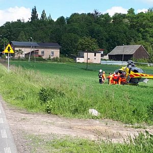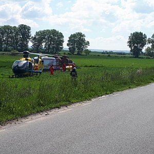 Jak ustalili wstępnie policjanci, motocyklista z nieznanych na tą chwile przyczyn, potrącił idącą jezdnią pieszą. W wyniku wypadku 68-letnia kobieta z obrażeniami ciała została przetransportowana śmigłowcem Lotniczego Pogotowia Ratunkowego do szpitala. Badanie alkotestem wykazało, że kierowca yamahy był trzeźwy.