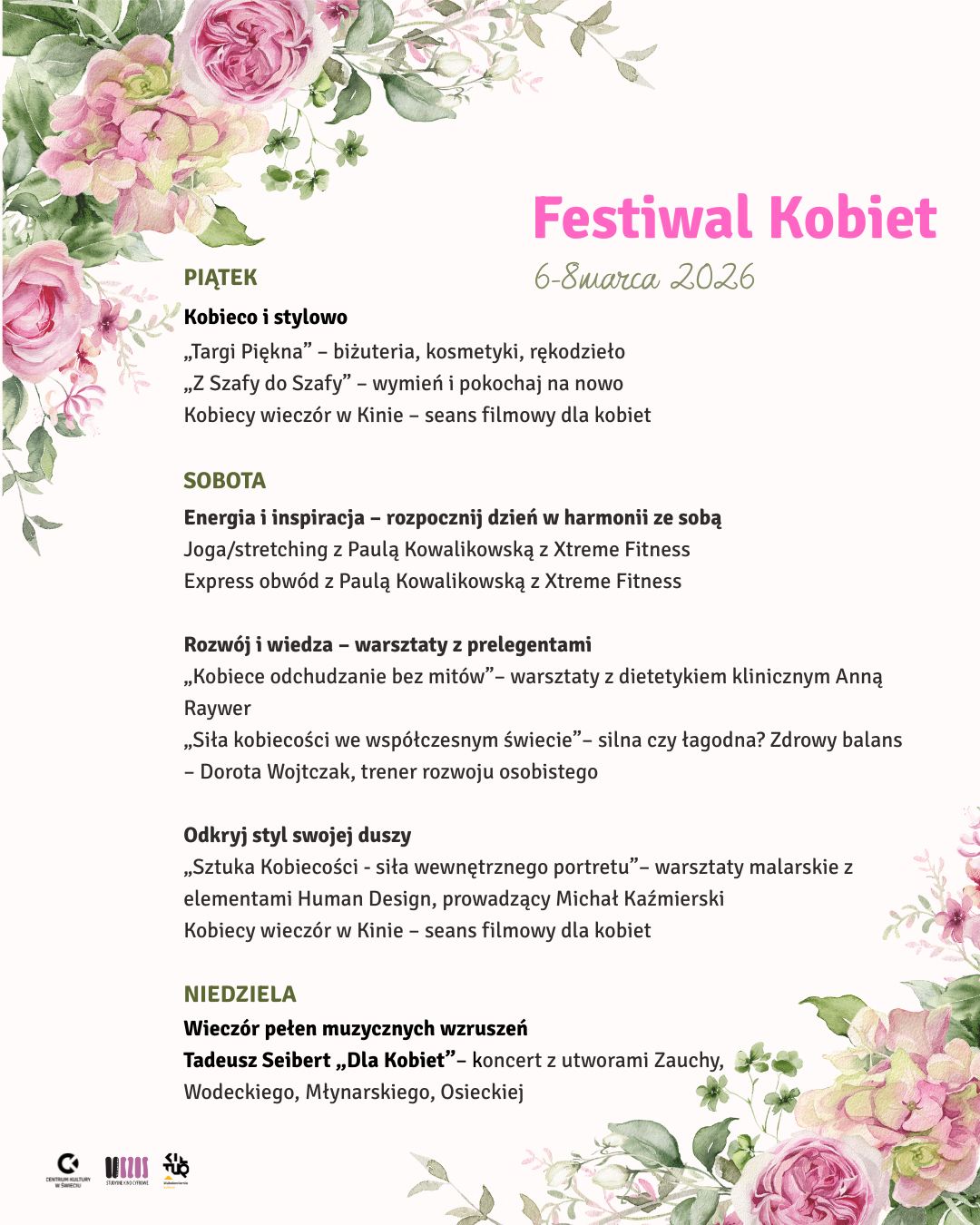 Równolegle, między 6 a 8 marca, Centrum Kultury w Świeciu zamieni się w prawdziwe centrum kobiecej energii.