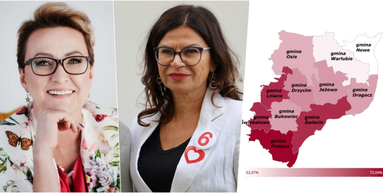 Najliczniej mieszkańcy poszli do urn w gminie Pruszcz, gdzie zagłosowało 72,04 proc. uprawnionych. Najmniej licznie mieszkańcy gminy Nowe, gdzie frekwencja wyniosła 62,07 proc.