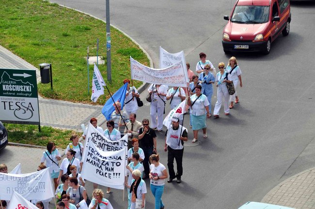 Średni personel Nowego Szpitala od zeszłego roku walczy o 100 zł podwyżki. Bezskutecznie. Dlatego dziś protest przeniósł się na ulice.