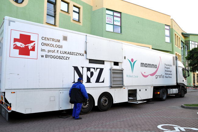 Przed budynkiem Przychodni w Świeciu stanął mammobus. Do środy wjazd od Wojska Polskiego jest zamknięty.