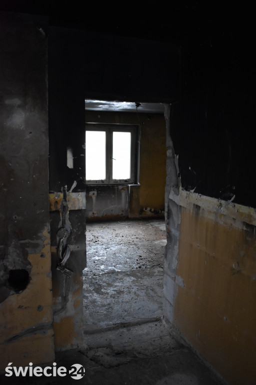 Przy ulicy Kwiatowej w Gródku stoi pusty dom. Część jego okien jest wybita, a dach pokryty folią. W środku jest już pusto, chociaż jeszcze wczoraj pełno było spalonego sprzętu domowego. Teraz czarne od ognia ściany przypominają o pożarze, który wybuchł tu w sylwestrową noc.