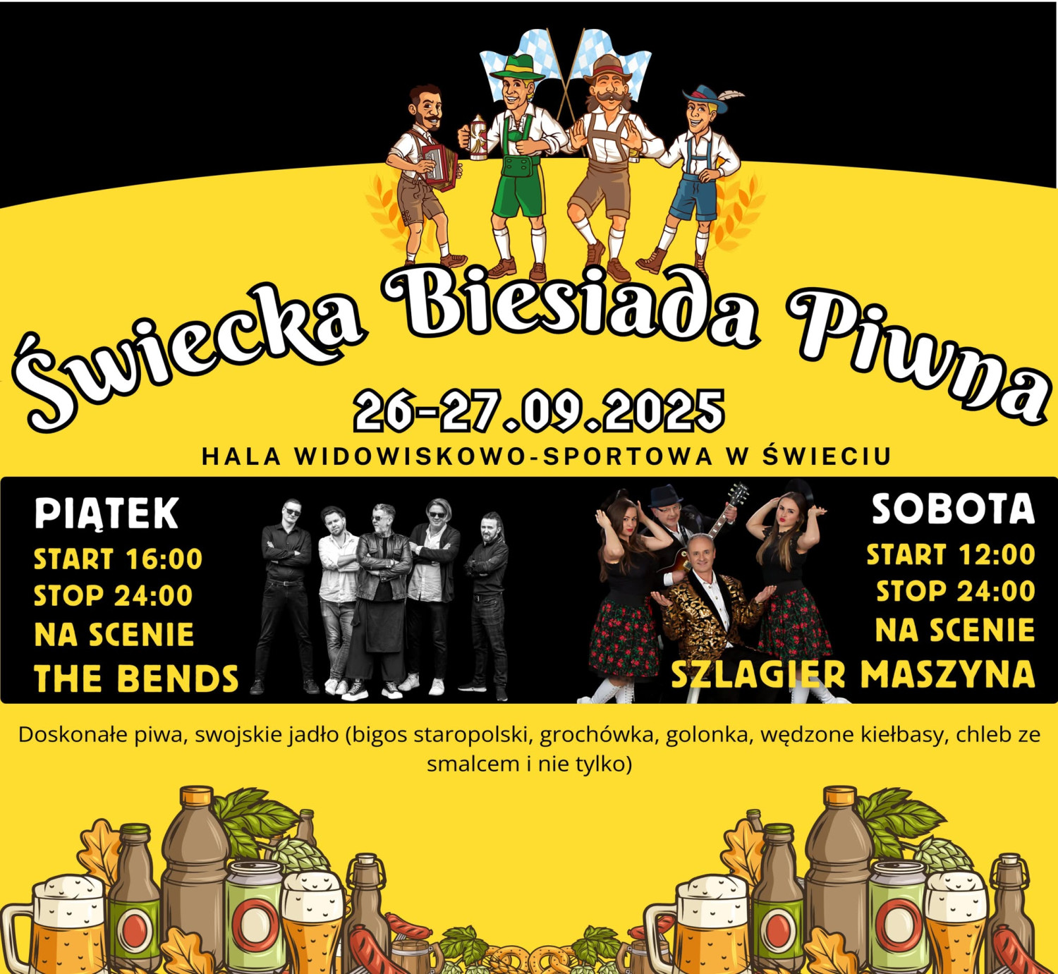 W ostatni weekend września świecka Hala Widowiskowo-Sportowa ponownie wypełni się aromatem chmielu i zapachem swojskiego jadła. Po raz trzeci w mieście odbędzie się festiwal piwa, który w tym roku przybiera nową formułę i nową nazwę — ze „Świeckiego Festiwalu Piwa” wydarzenie zmienia się w „Świecką Biesiadę Piwną”.
