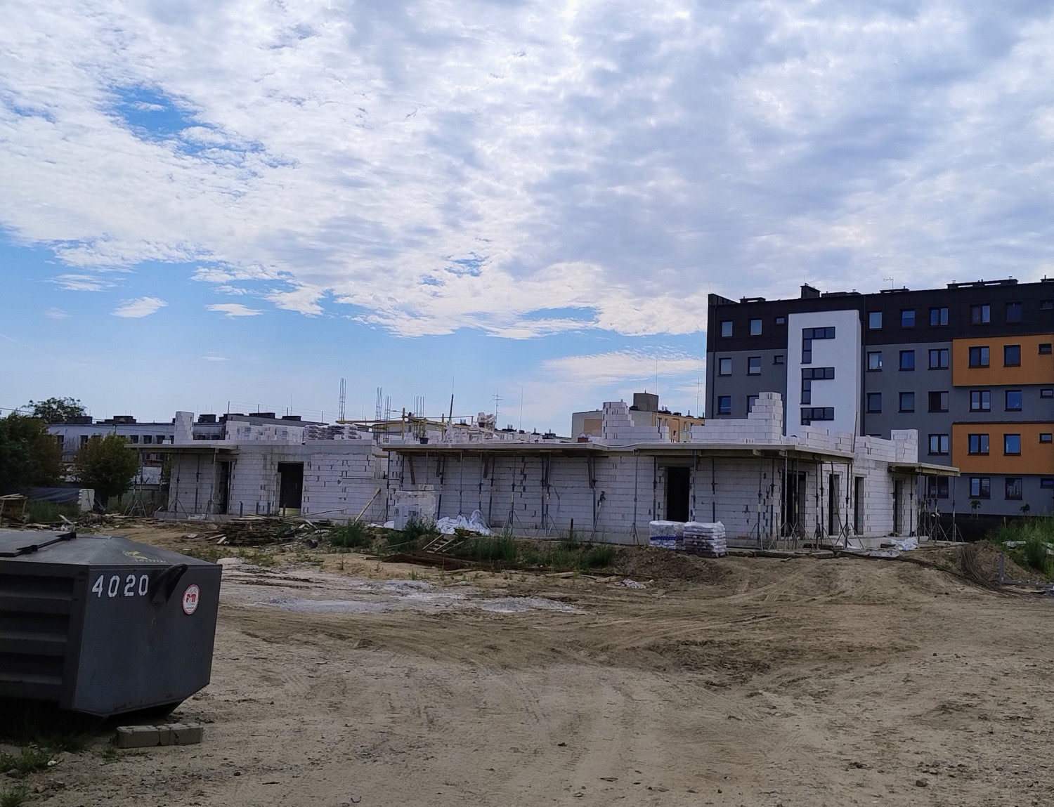 Jeszcze kilka dni temu nad parterem prowadzone były prace zbrojarskie, obecnie po wylaniu stropu, wyłaniają się już zarysy mieszkań pierwszego piętra.