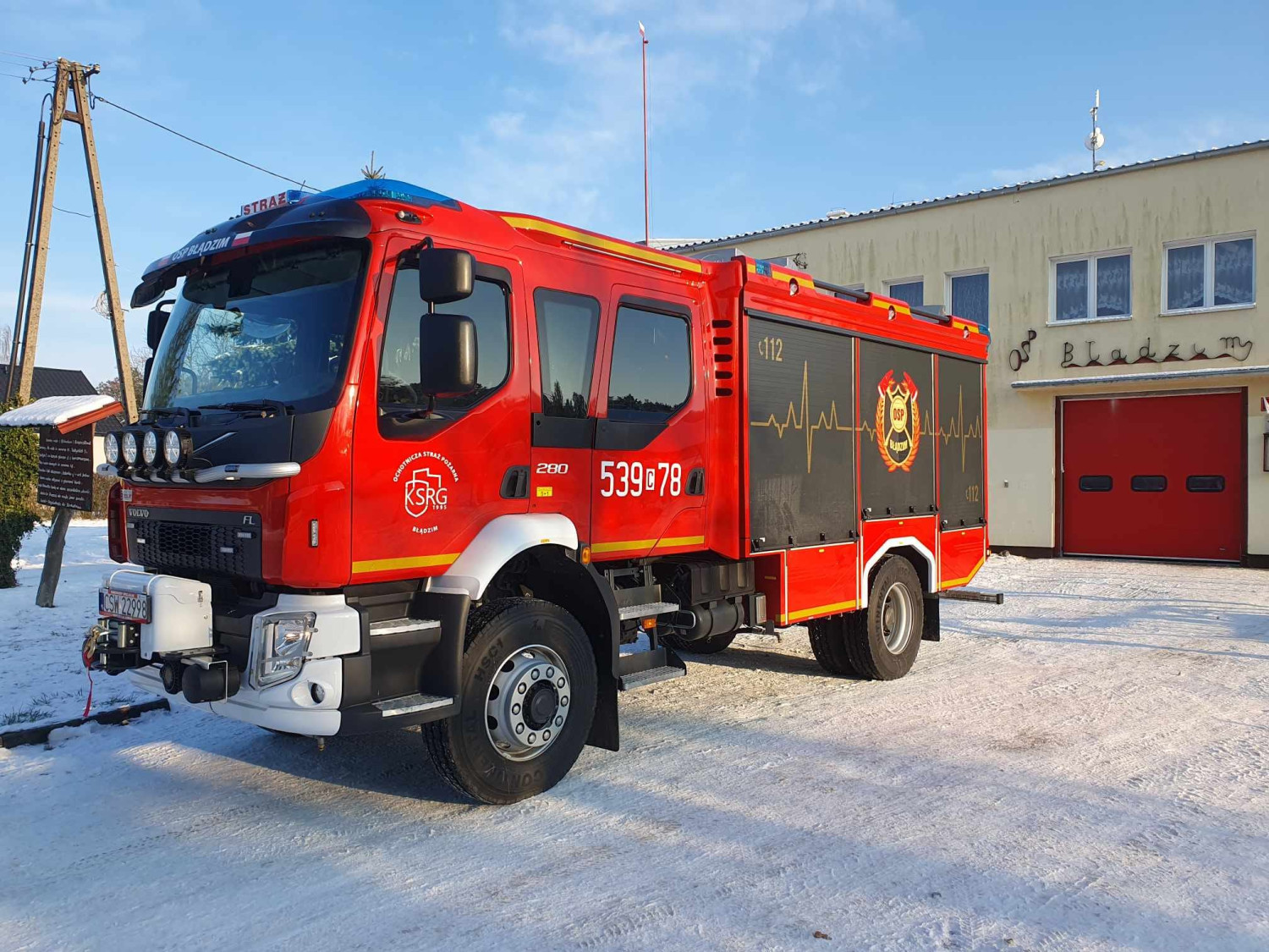 4 grudnia mieszkańcy powitali strażaków, którzy przyjechali zupełnie nowym samochodem do remizy OSP Błądzim.